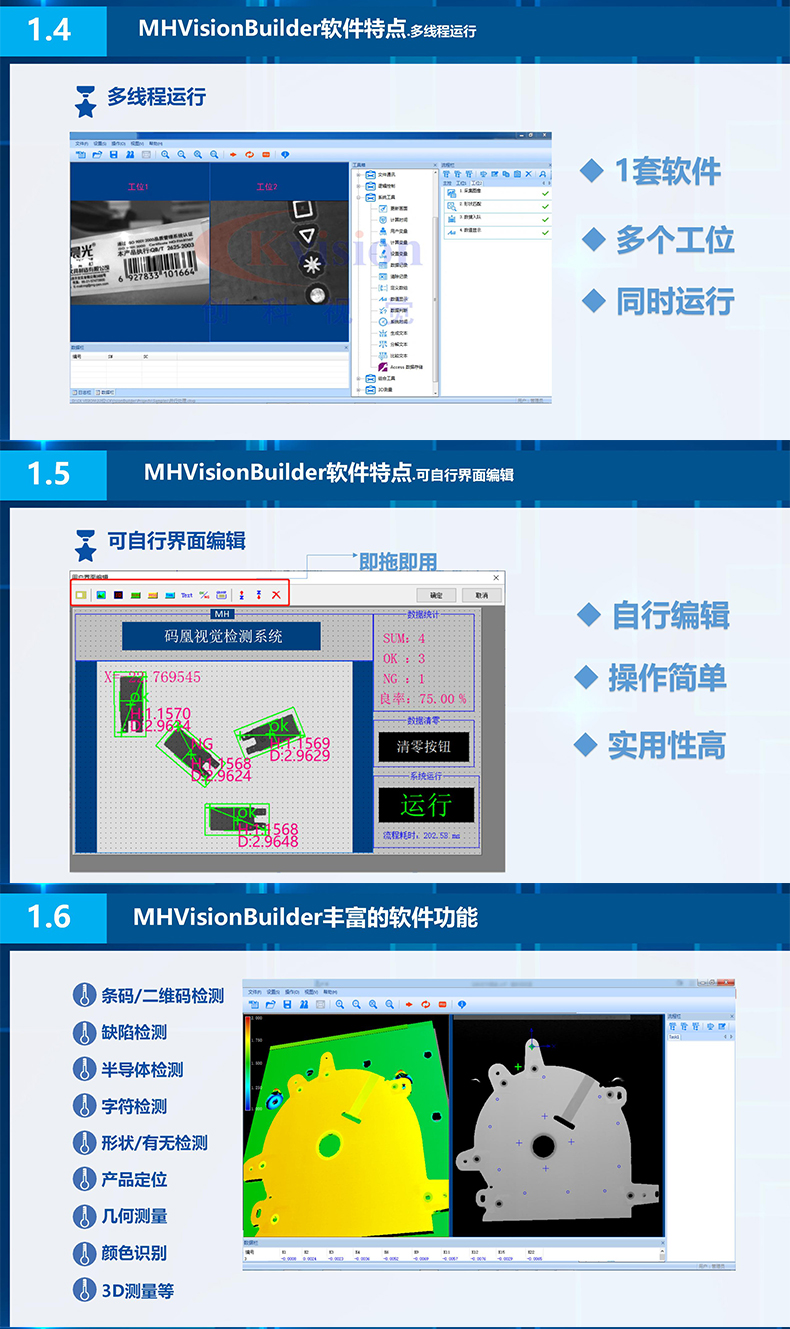 不用編程,用戶可開發算法工具,可用于數據分析,支持多相機同時運行,適用于多種行業